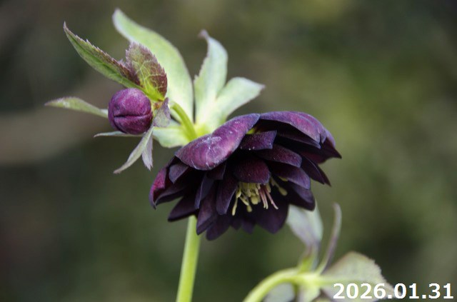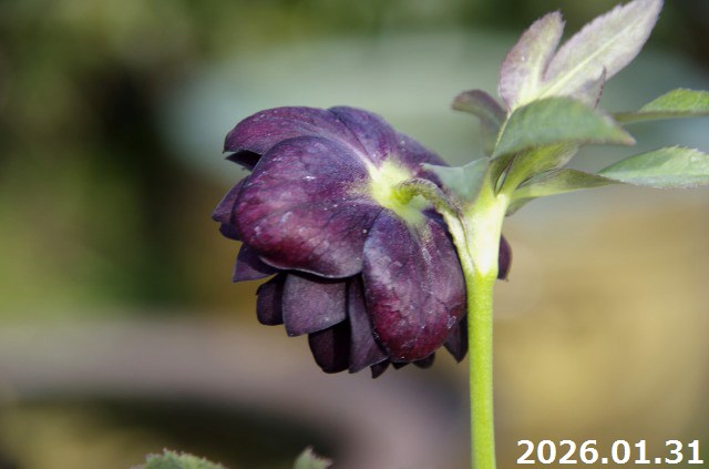 【現品No.1556】クリスマスローズ開花株 加藤農園 ブラックダブル(高15cm 花径5cm)4号深ポット 【送料無料】【ガーデンハイブリッドダブル】【山草系夏日陰の宿根草】【非耐暑性宿根草】