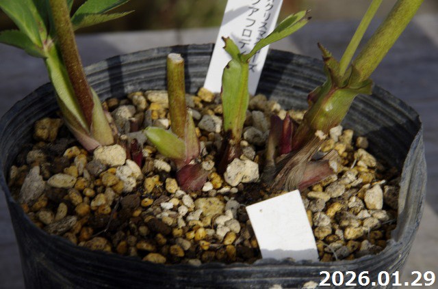 特に各ナーセリーのクリスマスローズを色々お買い求めになり、同一の棚で同一管理しますと、用土の違いによって