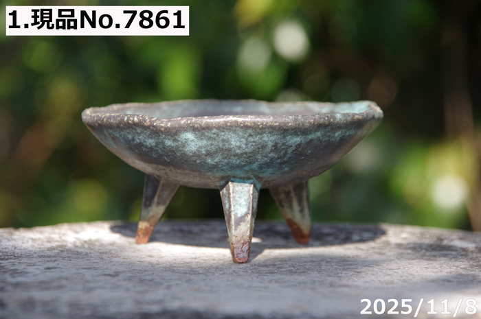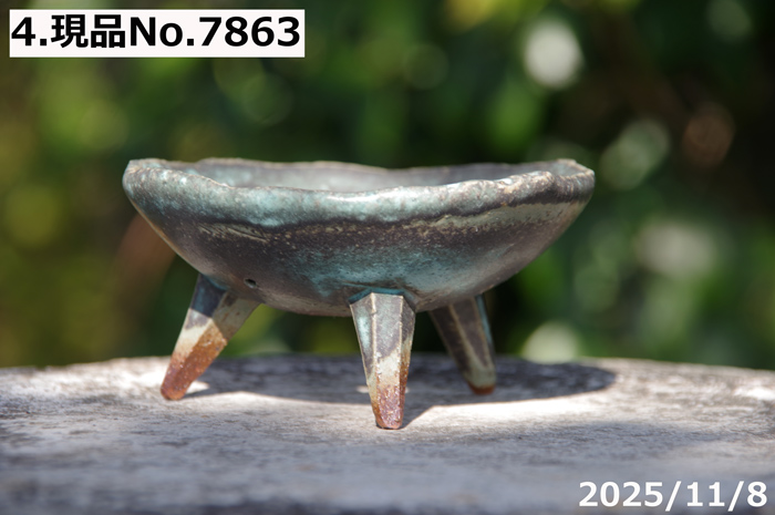 | 品名 | 信楽焼 植木鉢 選べる 青竹釉高足付浅鉢 3.5号 |