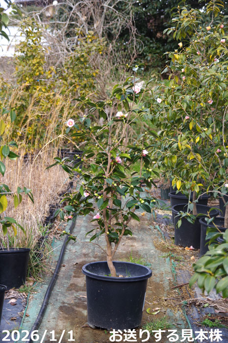 【現品・一品物No.0045】椿 苗 覆輪雛侘助 12号抜き苗 高さ約145cm (長期化成肥料付)【半日陰〜好日性植物】【椿苗 ツバキ】【盆栽素材】【茶花】【植木 庭木】【樹木 花木】【ワビスケツバキ 侘助】【椿 苗木】