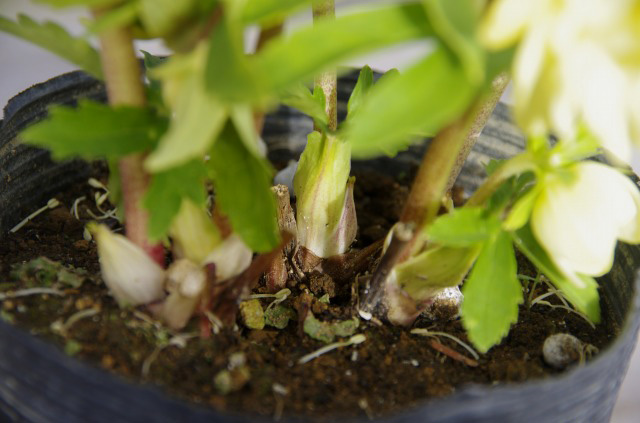 福寿草の春の植え替えは花後といわれています。クリスマスローズも水切れの悪い培養土で植えられている場合、