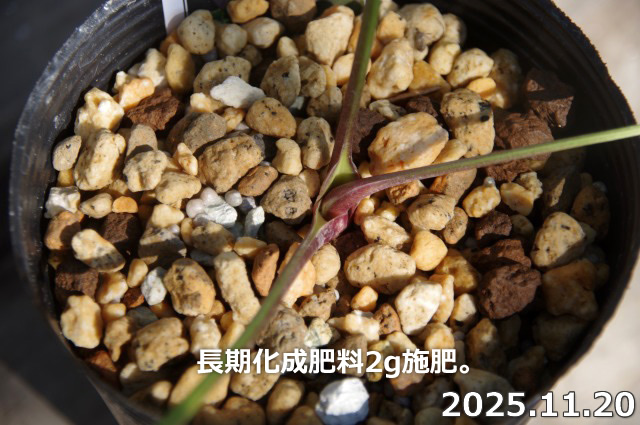 イ)その後、12月に入りますと、2ヶ月に1回位を目安に施肥して下さい。