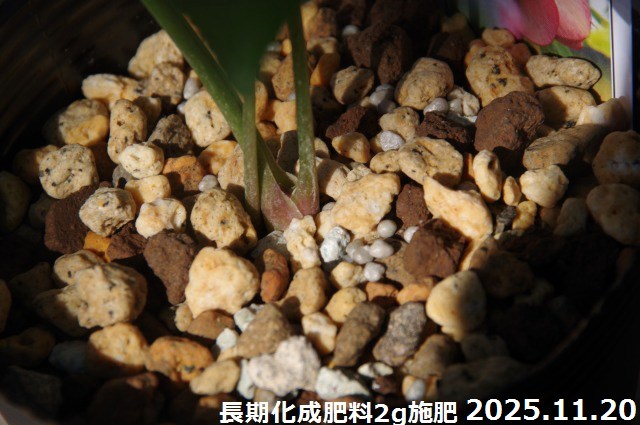 イ)その後、12月に入りますと、2ヶ月に1回位を目安に施肥して下さい。