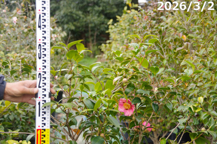 【現品一点物No.3426】椿 苗 桃色妙連寺 12号 高さ135cm(長期化成肥料付)【半日陰〜好日性植物】【椿苗 ツバキ】【植木 庭木】【樹木 花木】【茶花】【椿 苗木】