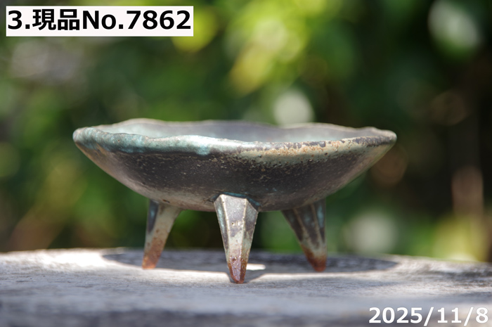 | 品名 | 信楽焼 植木鉢 選べる 青竹釉高足付浅鉢 3.5号 |