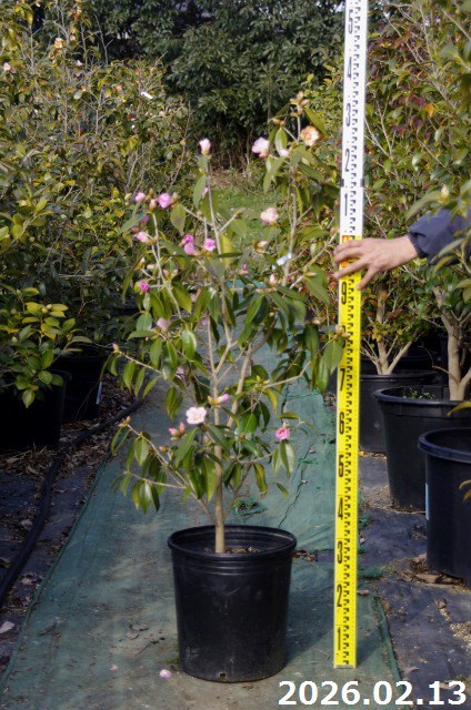 【現品・一点物No.3674】椿 苗 庭木 太郎冠者(有楽) 10号 高さ138cm (長期化成肥料付) 【半日陰~好日性植物】【椿苗 ツバキ】【植木 庭木】【樹木 花木】【茶花】【ワビスケツバキ 侘助】【椿 苗木】