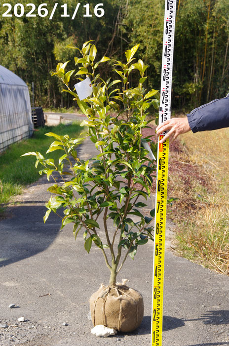 【現品・一点物No.0072】椿 苗 初黄 接木根巻苗 高さ145cm (長期化成肥料付) 【半日陰~好日性植物】【椿苗 ツバキ】【植木 庭木】【樹木 花木】【茶花】【ワビスケツバキ 侘助】【椿 苗木】