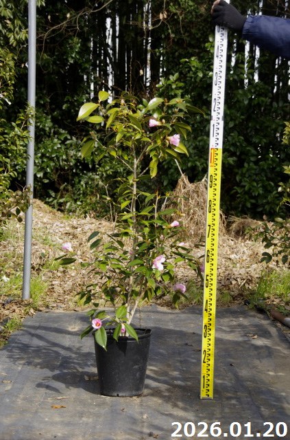【現品・一点物No.8432-2】椿 苗 「義政好み・初代ワビスケツバキ」 太郎冠者(有楽) 8号 1.25m (長期化成肥料付) 【半日陰~好日性植物】【椿苗 ツバキ】【植木 庭木】【樹木 花木】【茶花】【ワビスケツバキ 侘助】【椿 苗木】