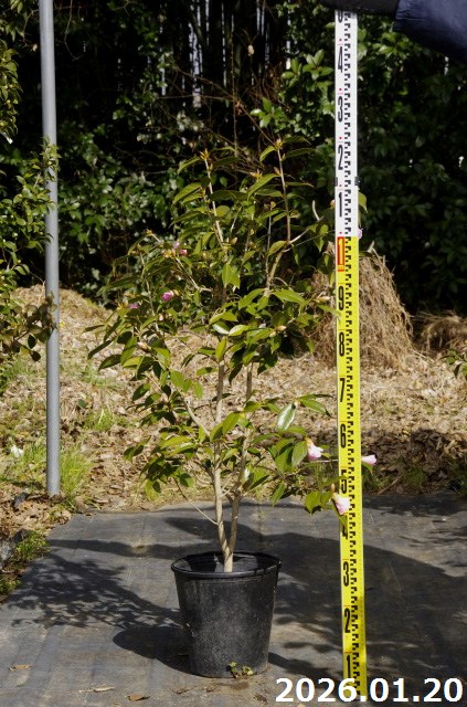 【現品・一点物No.8432-3】椿 苗 「義政好み・初代ワビスケツバキ」太郎冠者(有楽) 8号 1.25m (長期化成肥料付) 【半日陰~好日性植物】【椿苗 ツバキ】【植木 庭木】【樹木 花木】【茶花】【ワビスケツバキ 侘助】【椿 苗木】