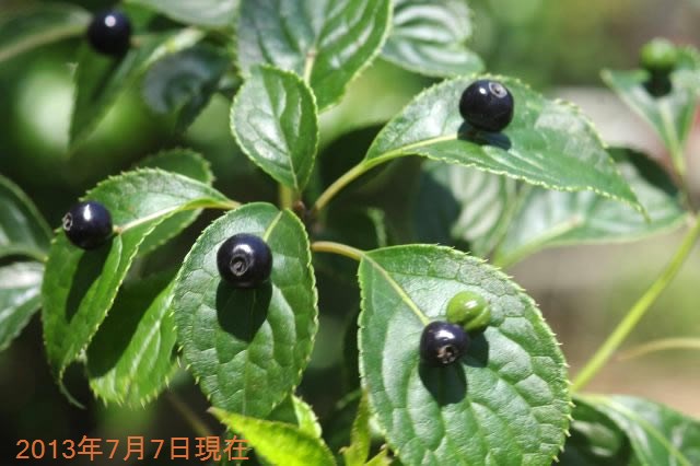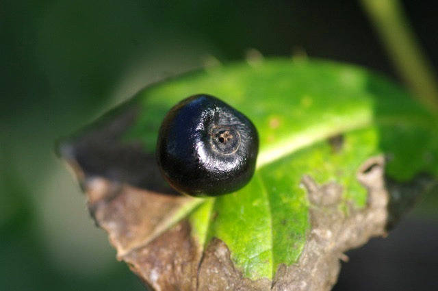 葉の中央に花を咲かせ、実を付けるおもしろい植物 雌雄異株