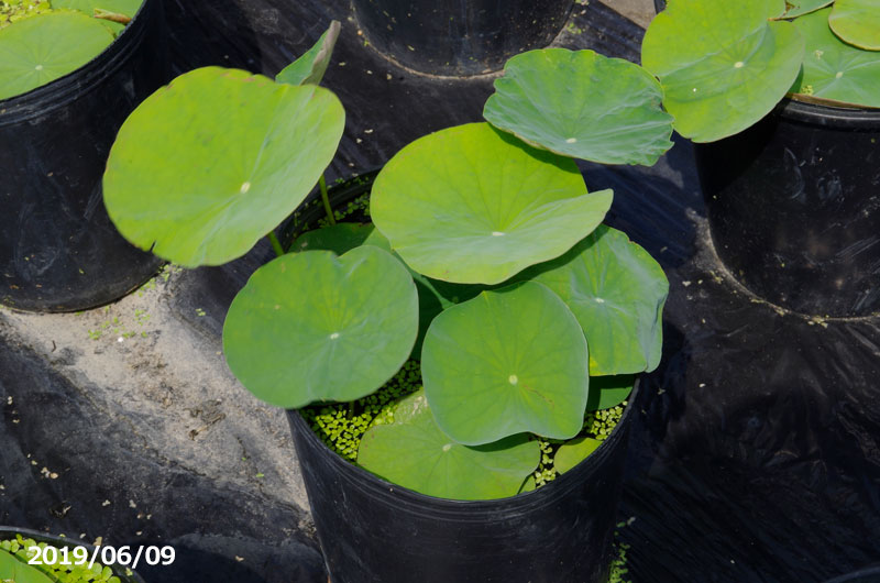 草姿は茶碗蓮より草丈が高く小型種と思われます。ポットで肥培しますと上作の場合5〜6本立ちの花上がりとなります。