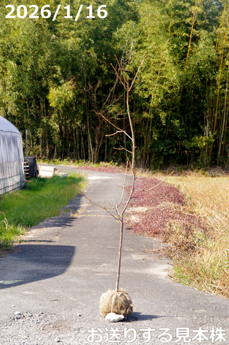 3. 生長することにより、発送時の箱サイズで160cm以内の規定にあり、曲げる。カットする。或はより大きい箱200cm以内2000円、つまり1000円は弊園負担によりお送りいたします。(2020年5月8日)