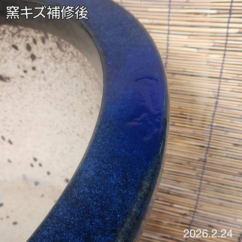 | 特徴 | 下記、別記参照 (1) 昭和時代後期の作。 (2) 本格的な釉薬の二度掛けの作です。 (3) 当時、大量に生産された中で、窯キズがみられ、規格外のB級品扱いとなり出荷は見送られていました。 (4) 窯キズありのB級品ではありますが、良き時代の職人芸の最高級品質の輪型植木鉢が窯元に残されていました。 (5) B級品であるところから窯キズは修理出来るところは修理し、安価にご提供させていただきました。(2019年07月17日) |