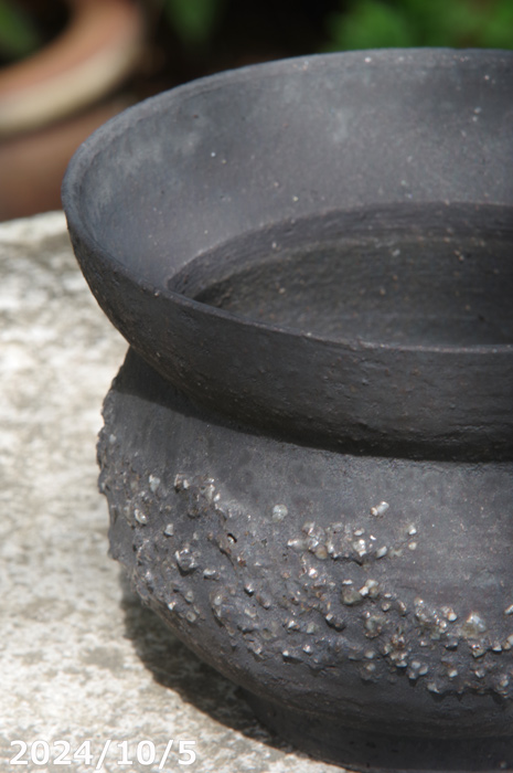 信楽焼 植木鉢 陶器 手びねり(ロクロ引き) 選べる 黒土使用 あられ 黒鉄釉 4号 サナサービス |