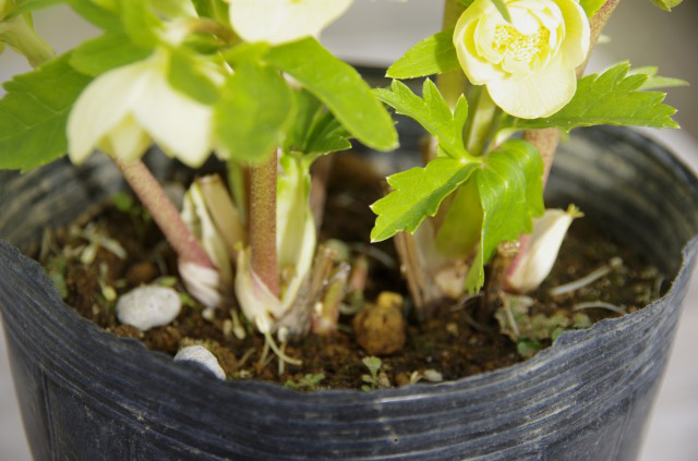 福寿草の春の植え替えは花後といわれています。クリスマスローズも水切れの悪い培養土で植えられている場合、