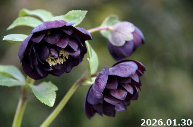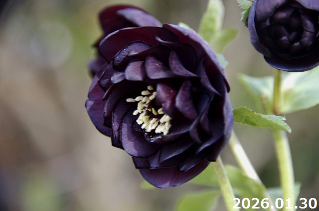 【現品No.1133】クリスマスローズ開花株 加藤農園 多弁花系ブラックダブル(高20cm 花径5cm)4号深ポット 【送料無料】【ガーデンハイブリッドダブル】【山草系夏日陰の宿根草】【非耐暑性宿根草】