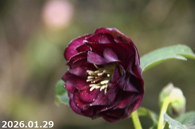 【現品No.1014】クリスマスローズ開花株 加藤農園 ダブル「グロッシーカラー」(花弁に泥汚れ有)(高16cm 花径5cm)4号深ポット 【送料無料】【ガーデンハイブリッドダブル】【山草系夏日陰の宿根草】【非耐暑性宿根草】