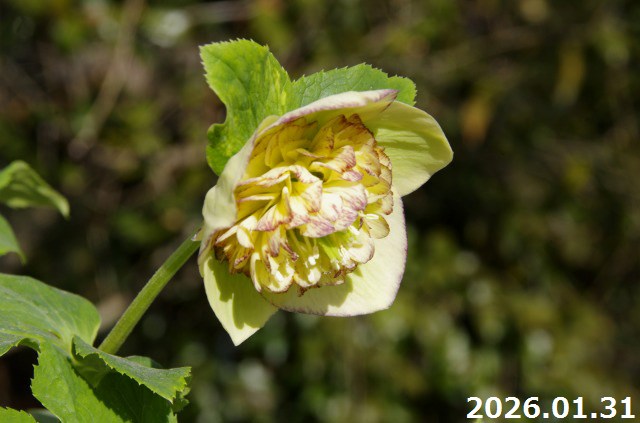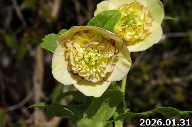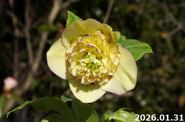 【現品No.1517】クリスマスローズ開花株 加藤農園 イエローピコティセミダブル(高28cm 花径6cm)4号深ポット 【送料無料】【ガーデンハイブリッドセミダブル】【山草系夏日陰の宿根草】【非耐暑性宿根草】
