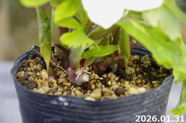 特に各ナーセリーのクリスマスローズを色々お買い求めになり、同一の棚で同一管理しますと、用土の違いによって