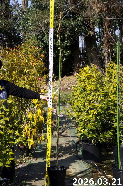 【現品・一点物No.0100】桜 苗木 河津桜(カワヅザクラ) 8号 高さ215cm(長期化成肥料付)【送料無料】【花木 桜 サクラ】【接木苗】