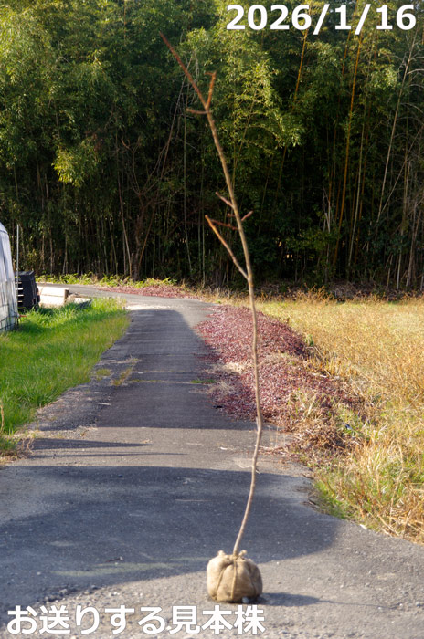 3. 生長することにより、発送時の箱サイズで160cm以内の規定にあり、曲げる。カットする。或はより大きい箱200cm以内2000円、つまり1000円は弊園負担によりお送りいたします。(2020年5月8日)