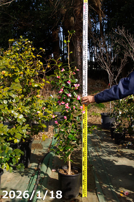 【現品・一点物No.0323】椿 苗 吉備 高さ175cm(ポット含む) (長期化成肥料付) 【半日陰〜好日性植物】【椿苗 ツバキ】【植木 庭木】【樹木 花木】【茶花】【ワビスケツバキ 侘助】【椿 苗木】