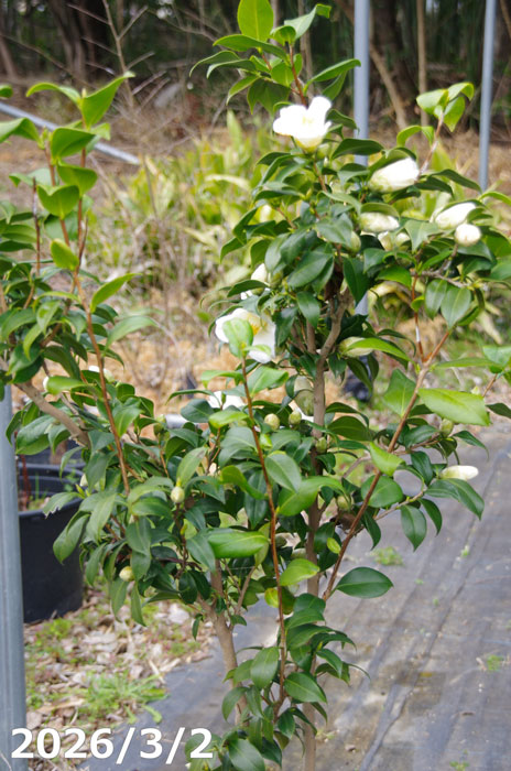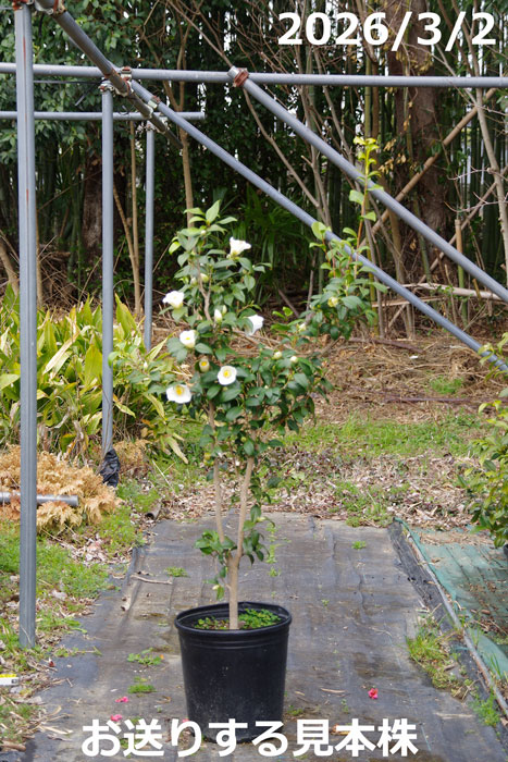 【現品一点物No.3753】椿 苗 最小白花 10号 高さ155cm (長期化成肥料付)【送料無料】【半日陰〜好日性植物】【椿苗 ツバキ】【植木 庭木】【樹木 花木】【茶花】【白花藪椿 白藪椿 シロヤブツバキ】【椿 苗木】